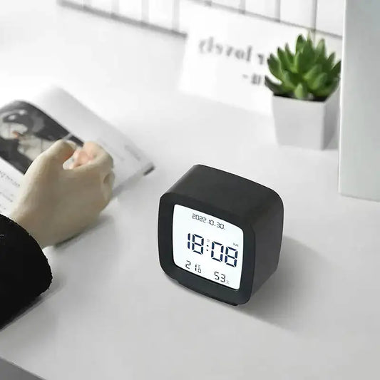 Réveil carré numérique blanc avec affichage rétroéclairé