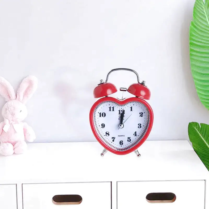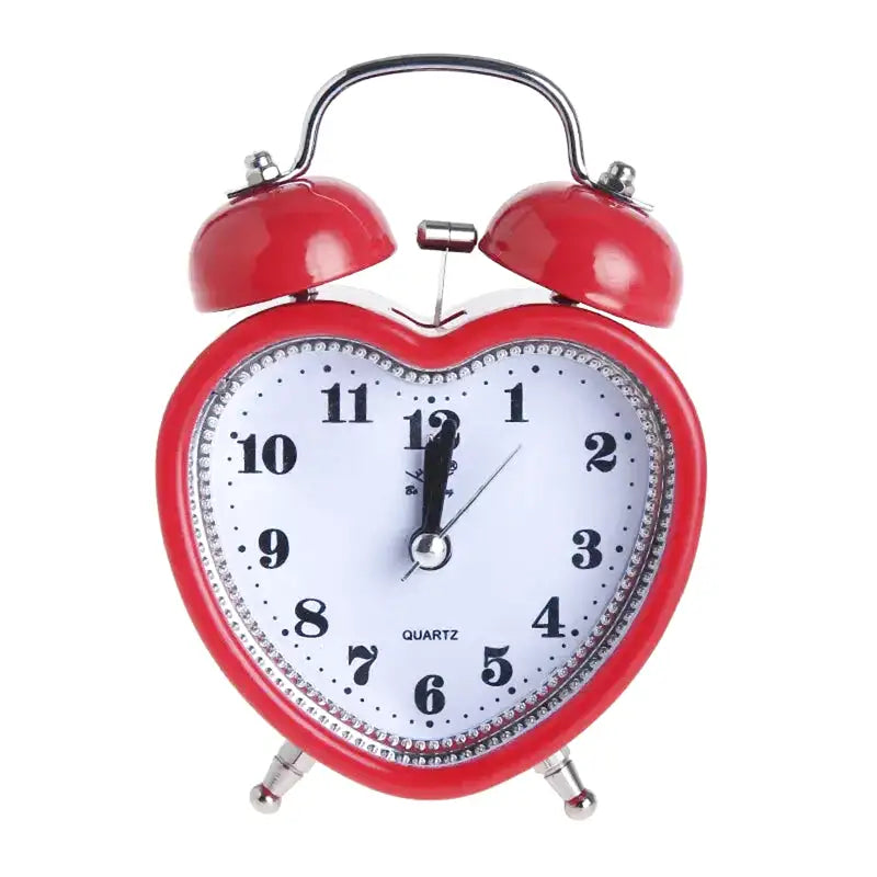 Réveil cœur rouge en métal avec strass brillants