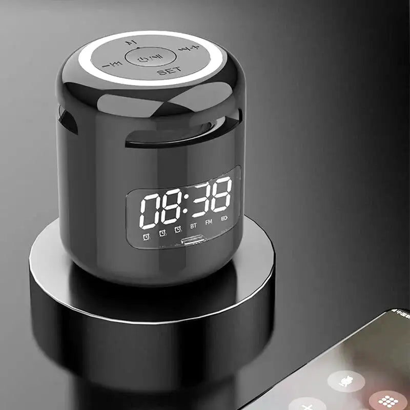 Son format compact et cylindrique s’intègre parfaitement sur n’importe quelle table de nuit. La surface douce au toucher et la finition noire élégante ajoutent une touche de modernité à votre chambre. L'écran blanc net est conçu pour offrir une lecture claire de l'heure, même dans le noir. Ce réveil n’est pas seulement pratique : il embellit votre espace tout en améliorant le confort de votre routine quotidienne.