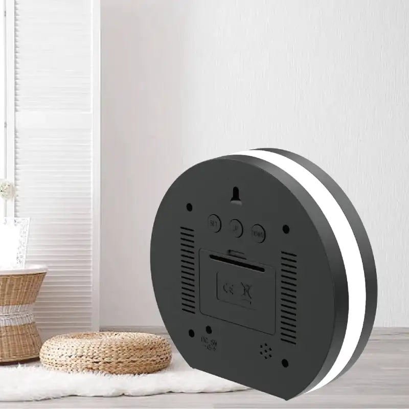 Le style compte, surtout quand il s'agit de votre espace de repos. Avec son corps en métal argenté brillant et sa forme ronde minimaliste, ce réveil apporte une touche de raffinement à votre table de nuit. Il s’intègre naturellement dans les décors modernes ou classiques, tout en renforçant une ambiance de calme et d’ordre. Son design épuré contribue à une atmosphère relaxante, idéale pour un sommeil profond et réparateur.