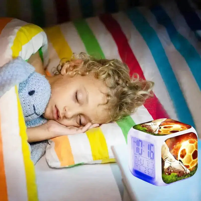 Réveil cube digital en plastique motif football coloré