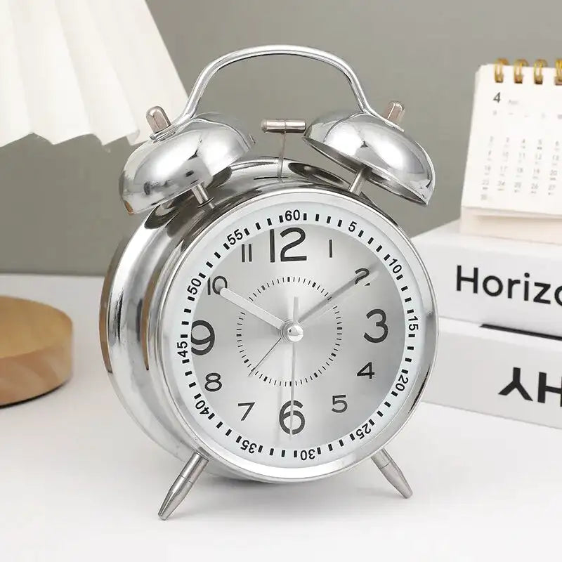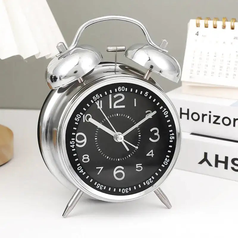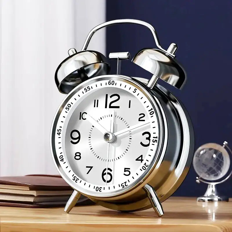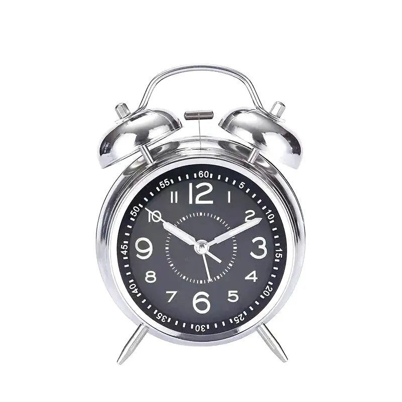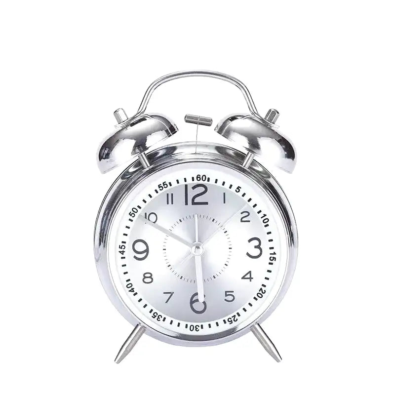 Réveil double cloche en métal argenté rétro